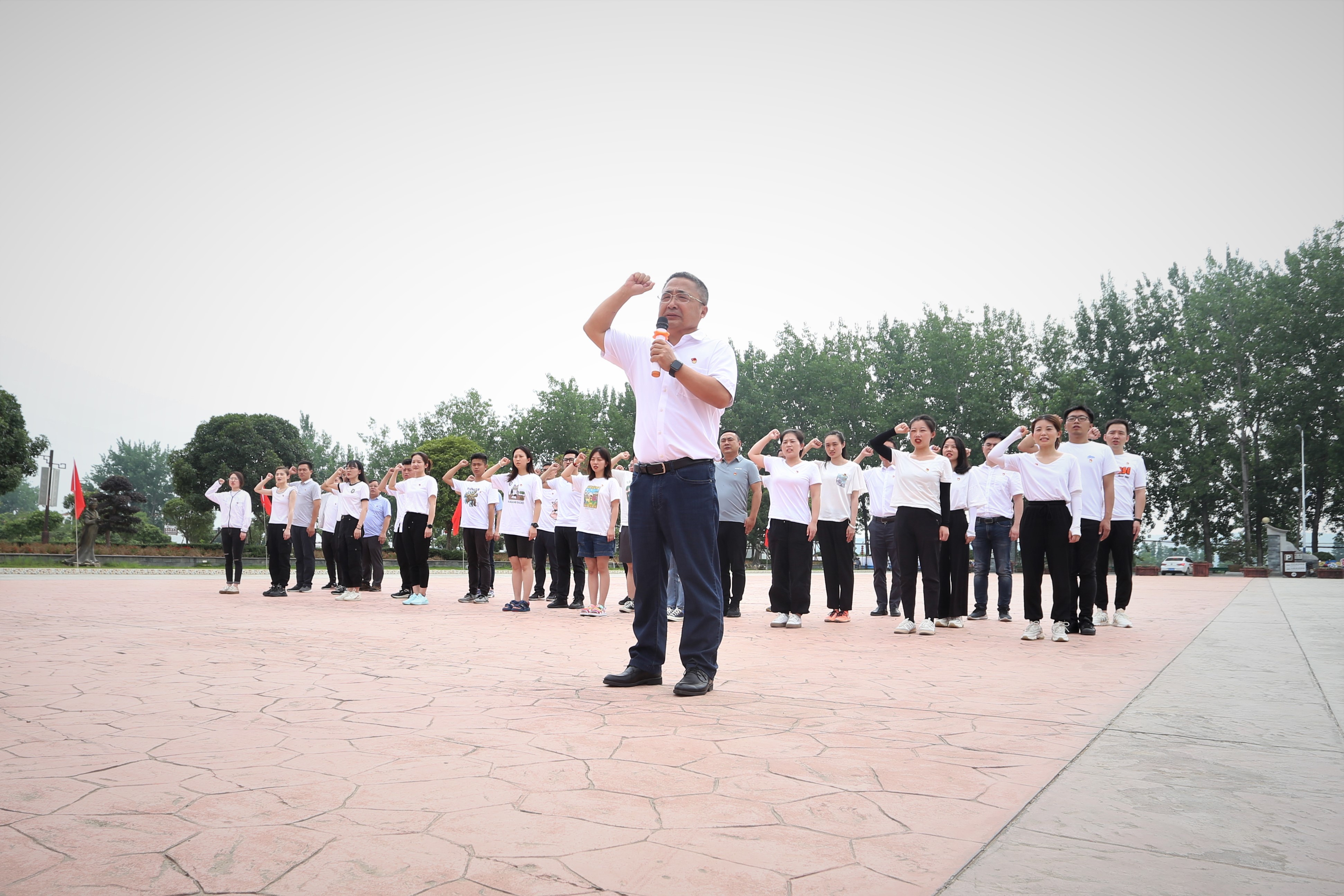 “我志愿加入中國共產黨,擁護黨的綱領,遵守黨的章程......”。公司黨總支副書記戚輝帶領全體黨員面向黨旗莊嚴宣誓,鏗鏘有力的宣誓聲在園區久久回蕩。