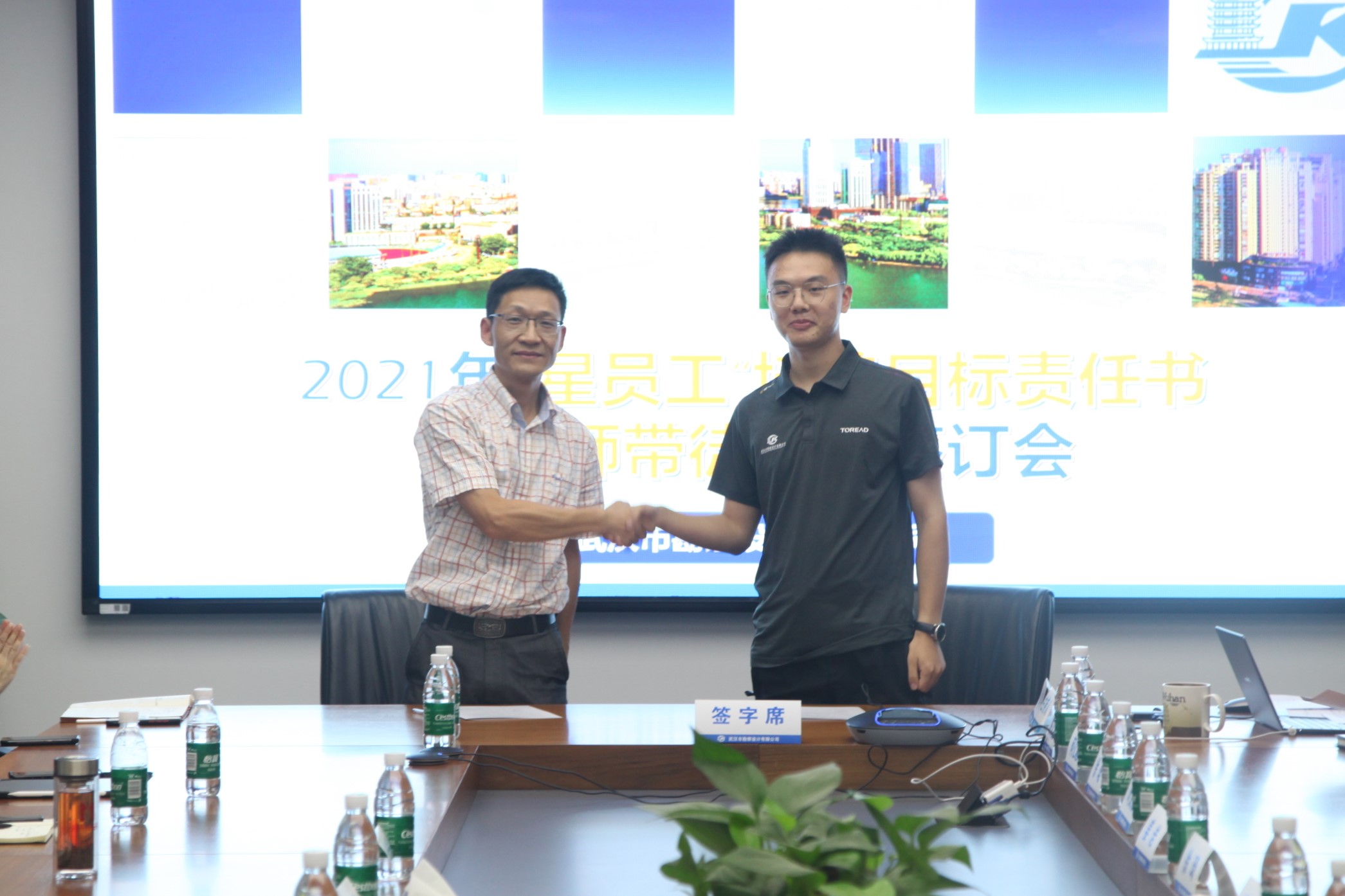 7月20日,公司舉行2021屆“星員工”培養目標責任書暨導師帶徒協議簽訂會。會上,各部門2021屆新員工與導師簽訂了師徒協議,標志著公司2021屆新員工培養工作正式開始。公司總經理施木俊及相關領導出席會議,新員工部門負責人,2021屆“星員工”及導師參加會議。