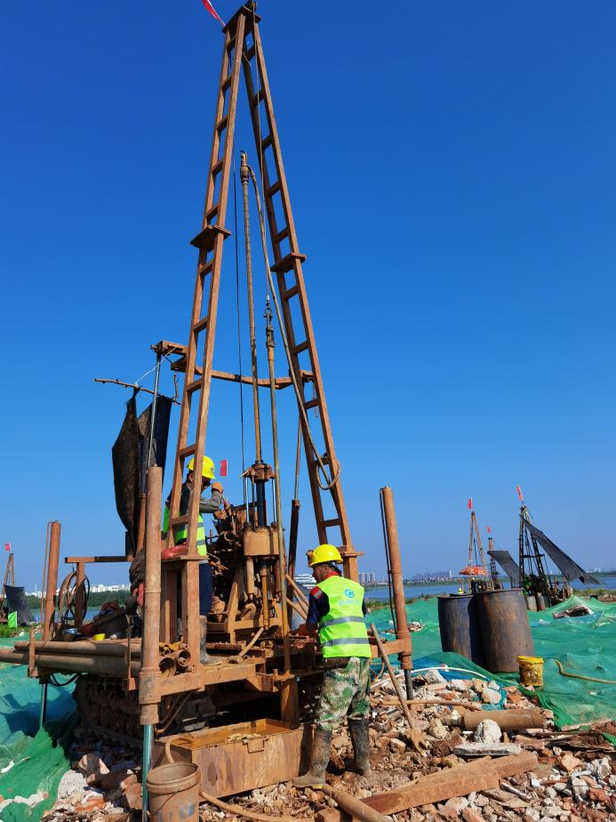 公司所屬新區分公司組織高水平項目團隊,正按建設方及設計單位要求,緊張有序地進行巖土工程詳細勘察工作。在實施過程中,為確保作業進度和防治安全隱患,項目團隊積極協調水務、燃氣、電力、地鐵等管理部門及拆遷單位,嚴格落實安全保障措施及環保措施,切實做到“零”安全事故、“零”環境污染事故和“零”管線安全事故。項目團隊現已投入18臺鉆機和3臺靜探車加緊作業,確保項目按期交付。