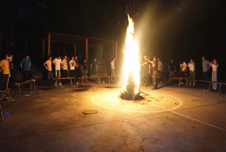 簡單的軍訓(xùn)結(jié)束后,拓展活動(dòng)隨即拉開帷幕,教練向大家詳細(xì)講解了本次拓展活動(dòng)的要求和具體規(guī)則,以輕松有趣的熱身方式對(duì)隊(duì)員進(jìn)行了分組,分別制定了隊(duì)名及口號(hào),并進(jìn)行了團(tuán)隊(duì)建設(shè)、團(tuán)隊(duì)融合和團(tuán)隊(duì)展示。在5名教練的指導(dǎo)下,隊(duì)員們攻堅(jiān)克難,不斷挑戰(zhàn)自我、突破自我,先后完成了“風(fēng)雨戰(zhàn)士”、“信任背摔”、“穿越電網(wǎng)”等團(tuán)隊(duì)游戲。活動(dòng)中,各隊(duì)隊(duì)員全心投入,充分調(diào)動(dòng)自己的靈感和創(chuàng)造性,積極獻(xiàn)言獻(xiàn)策,協(xié)作完成了項(xiàng)目設(shè)置的層層挑戰(zhàn),掌聲、笑聲和歡呼聲此起彼伏。當(dāng)晚,一場精彩的篝火晚會(huì)在月夜下拉開帷幕,隊(duì)員們手拉手圍著篝火,隨音樂起舞。來自各部門的“文藝骨干”即興表演,引得掌聲不斷,歡呼不歇。